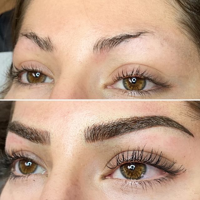 Microblading, also known as eyebrow embroidery or 3D brows, is a relatively new manual method for enhancing eyebrows. It is considered to be permanent makeup, as compared to the traditional hair stroke technique done by machine. It is done using a handheld tool (pen) with a very fine needle grouping to deposit pigment into the dermis. Because the color is closer to the surface, the strokes appear crisp & very fine. There is no spilling under the skin.